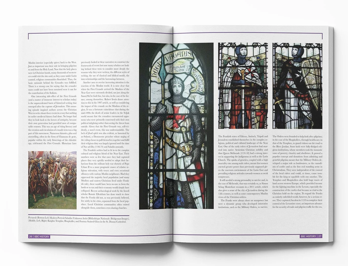 Complete Cover to cover redesign of BBC History Magazine, with a greater focus on organization of imagery and content. This edition is meant to be a commemorative issue that focuses on the three crusades. Advertisements included within are sourced from the original issue. Select images and copy are sourced from official BBC history articles. Original Artwork was illustrated by me to further enhance the content.